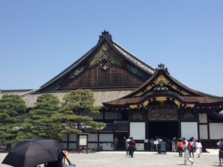 二条城!ここはどうしても美來が行きたかった場所!7歳の誕生日にお城の本を買ってほしいと言われ、昨年の 夏に大阪城へ行ってから日本のお城を制覇したいと言い興味を持ったようです・・・。京都の二条所へ!と楽しみにしていたようですが、大阪城のように高い建物だと思っていたようで想像していたのとは違っていたようでした。大政奉還でも知られる二条城!本当に広い建物です。