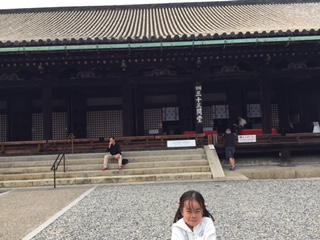 三十三間堂!柱の間数が33あるので三十三間堂とよばれ、本尊である千手観音座像に美來は全部手に何か持ってるねっ!とよく見てました。ここは私が京都にいたとき行こうと思いながら行けずじまいであったので美來と行ってみました。