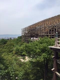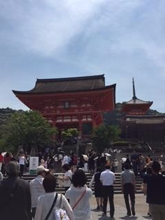 清水寺!今屋根をなおしているようです。2年かかると話されていました。冬羽が3年生の修学旅行では清水見られるかな?日中はやはり人が多くて・・・清水寺は朝6時がおススメです!