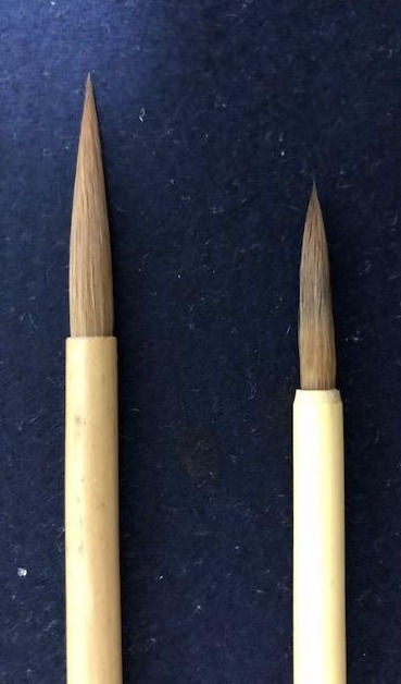 今はこの2本が気に入っています。仮名用の面相筆はイタチをよく使っていますが、コリンスキーの筆を初めて使うようになり、とてもコシが強く穂先もきいて香紙切の線を出してくれます。